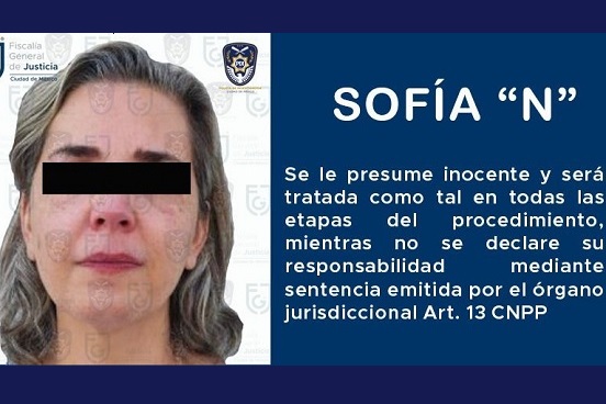 Sofía “N”, tras ser identificada, fue capturada y le fueron leídos sus derechos, para posteriormente ser trasladada a la Ciudad de México al Centro de Reinserción Social de Santa Martha Acatitla para ser presentada ante el juez que la solicitó.