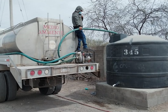Al igual que en las otras entidades, mediante pipas, en Guaymas, Sonora, desde el 2 de enero pasado se ha entregado un total de 860 mil L a un estimado de mil 500 habitantes.