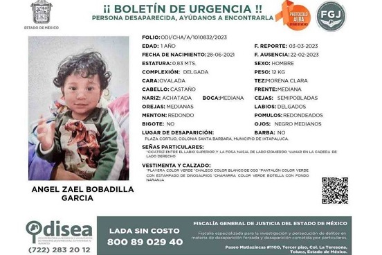 De contar con alguna información que ayude a encontrar a Ángel Azael, favor de notificar a las autoridades a los teléfonos: 7222832012 o al 8008902940.