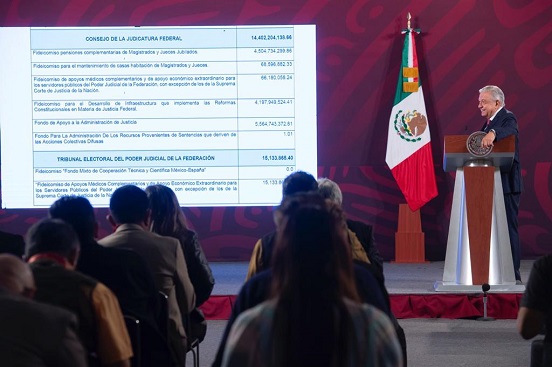López Obrador detalló -por ejemplo- que parte de esos recursos son para pesiones complementarias de magistrados y jueces jubilados, o el mantenimiento de casas habitación de magistrados y jueces.