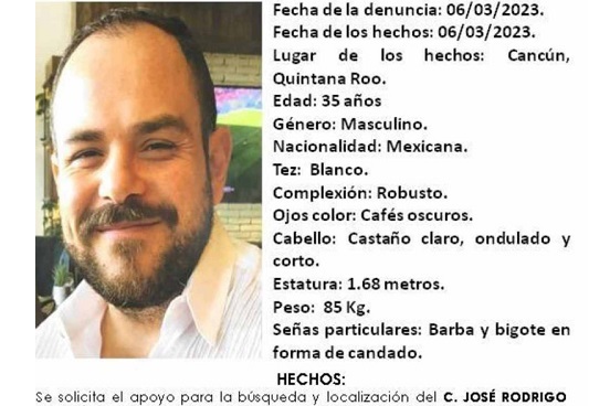 Rodrigo fue reportado como desaparecido desde el 6 de marzo y la última vez en que se le vio fue en el municipio de Benito Juárez.