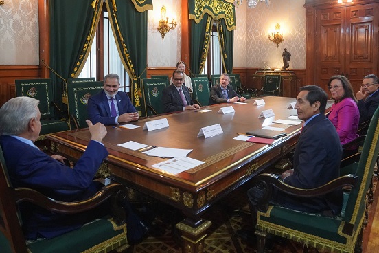 El presidente Andrés Manuel López Obrador sostuvo un encuentro en sus oficinas de Palacio Nacional con el secretario general de la Organización de Países Exportadores de Petróleo (OPEP), Haitham AL-Ghais, y otros directivos de esa instancia internacional.