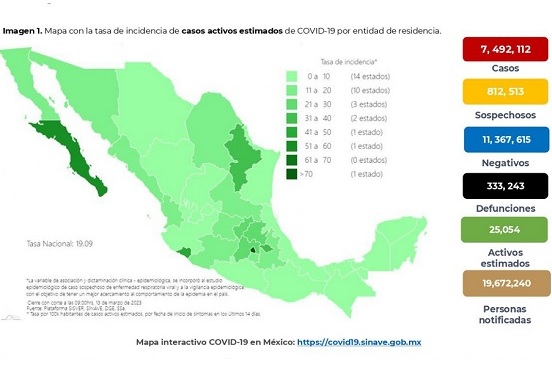 De acuerdo con el Informe Técnico semanal de esta enfermedad, hasta ahora han fallecido 333 mil 243 personas y de ellas, 141 fueron reportadas en los últimos ocho días.