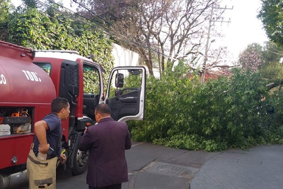 Una rama cayó sobre un automóvil en Cráter y Boulevard de la Luz en la colonia Jardines del Pedregal en Álvaro Obregón, pero no hubo personas lesionadas.
