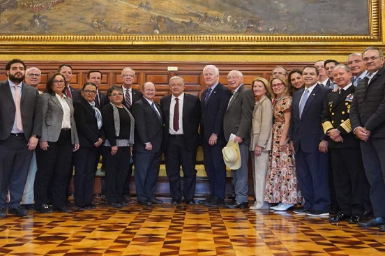 El presidente Andrés Manuel López Obrador se reunió con 12 legisladores y representantes del Gobierno de Estados Unidos, como el embajador Ken Salazar, en Palacio Nacional.