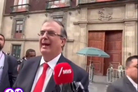 A Marcelo Ebrard, secretario de Relaciones Exteriores, le arrojaron un vaso con nieve al salir de Palacio Nacional, luego que culminó el encuentro que tuvo con el presidente Andrés Manuel López Obrador y congresistas de Estados Unidos.