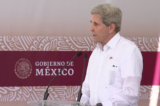 John Kerry, enviado especial para el Clima de Estados Unidos, transmitió en español el mensaje que llevaba de Joe Biden para el presidente de México Andrés Manuel López Obrador: “Estados Unidos y México para siempre”.