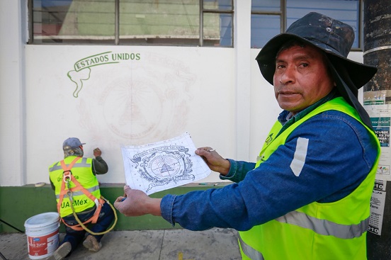 A ‘mano alzada’, Alberto José Montiel Castelar -pintor de profesión- se encarga de plasmar el escudo institucional en cada espacio de la Universidad Autónoma del Estado de México (UAEMéx). Considera de suma importancia conservar este símbolo y difundir su historia para que la comunidad universitaria lo conozca y respete.