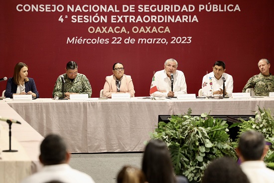 Durante la cuarta sesión del Consejo Nacional de Seguridad Pública, realizada en Oaxaca, la titular de la Secretaría de Seguridad y Protección Ciudadana (SSPC), Rosa Icela Rodríguez, dijo que la estrategia para pacificar al país avanza por el camino correcto y México está más cerca de alcanzar la paz y lejos de la guerra.
