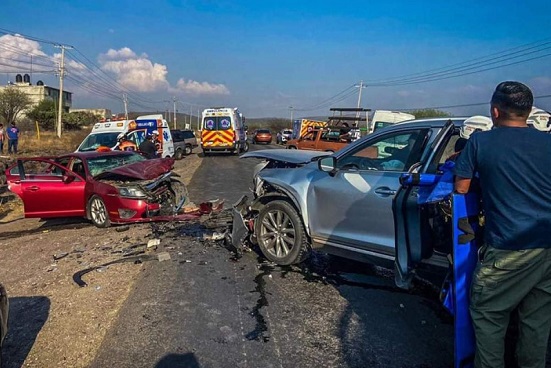 Un saldo de 10 personas lesionadas fue lo que dejó un choque protagonizado por dos automóviles particulares ayer, informaron los servicios de emergencia del estado de Querétaro.