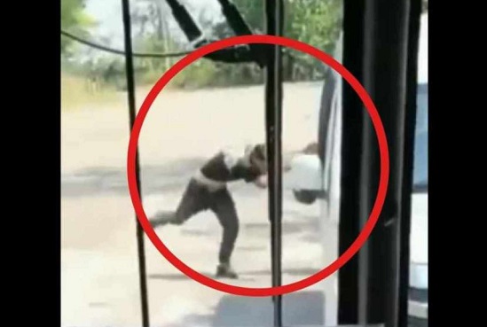 En el video se observa, como dos elementos de migración jalonean y dan puñetazos a la persona de origen extranjero, quien se resiste a subirse a la unidad del INM.
