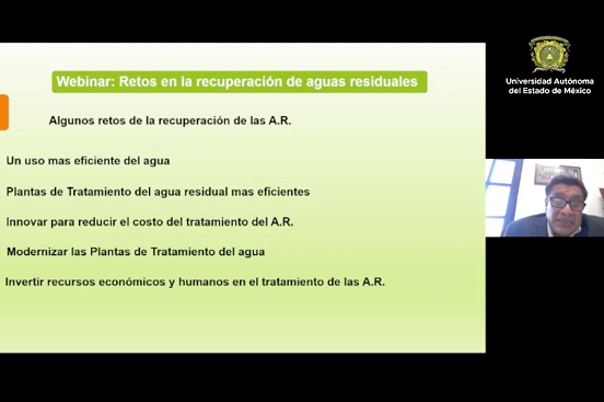 Durante esta emisión del webinar también participó el investigador del Instituto Interamericano de Tecnología y Ciencias del Agua, Mario Esparza Soto, con la conferencia “Tratamiento de Residuos Orgánicos de Cocina en Digestores Escala Piloto para la Producción de Bioenergía”; la investigadora de la Unidad Profesional Interdisciplinaria de Ingeniería Campus Zacateca del Politécnico Nacional, Cinthya Pamela del Río Galvan, con la ponencia “Situación actual del tratamiento y reúso del agua en México”; la especialista Lizeth Yaes Yañez, con la conferencia “PTAR para agua residual industrial” y el investigador de la Facultad de Química de la UAEMéx, Jesús Alfredo Liévanos Barrera, con la ponencia “Laboratorios de prueba acreditados para el análisis de agua residual”.