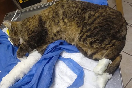 A través de redes sociales se difundió que el “michi” ha sido atendido médicamente pero aún continúa hospitalizado con algunas mejoras en su salud.