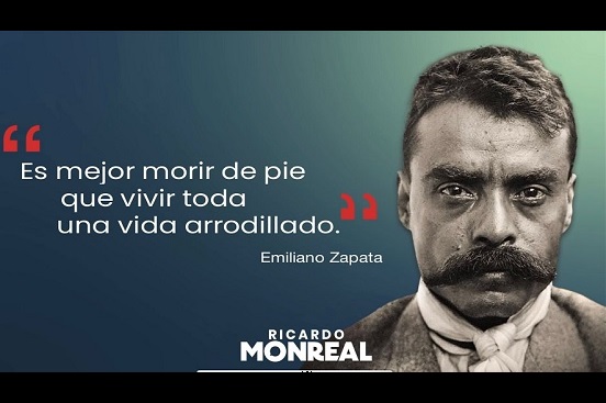 “Es mejor morir de pie que vivir toda una vida arrodillado”, representa una frase inmortal del también llamado “El Caudillo del Sur”, puntualizó Ricardo Monreal, pues “el legado de Zapata aún se mantiene, su lucha se mantiene”. “Que vivan los campesinos de México”, concluyó.