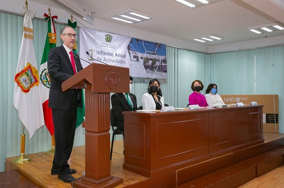 La Universidad Autónoma del Estado de México (UAEMéx) destaca por su compromiso con la calidad académica y su responsabilidad social, según afirmó el rector Carlos Eduardo Barrera Díaz durante el Primer Informe Anual de Actividades que rindió la directora de la Facultad de Humanidades, Beatriz Adriana González Durán.