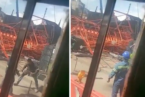 Los primeros reportes indican que la estructura es de los andamios que son usados por los trabajadores para subir a las columnas, y que no hay personas heridas.