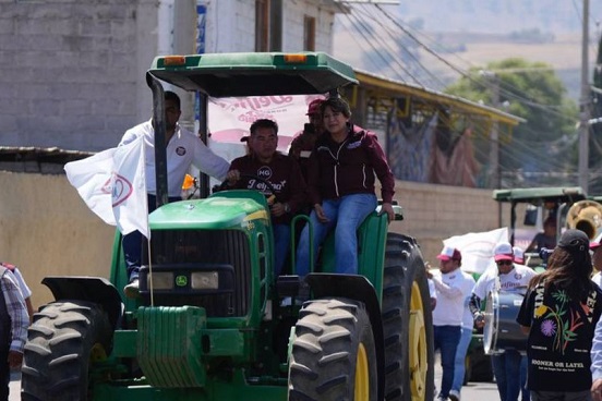 La maestra Delfina Gómez, candidata de MORENA, PT y PVEM a gobernadora del Estado de México, realizó un amplio recorrido en tractor por tierras agrícolas en el municipio de Juchitepec, donde ante cientos de campesinos y comerciantes se comprometió a reforzar los apoyos para este sector productivo.