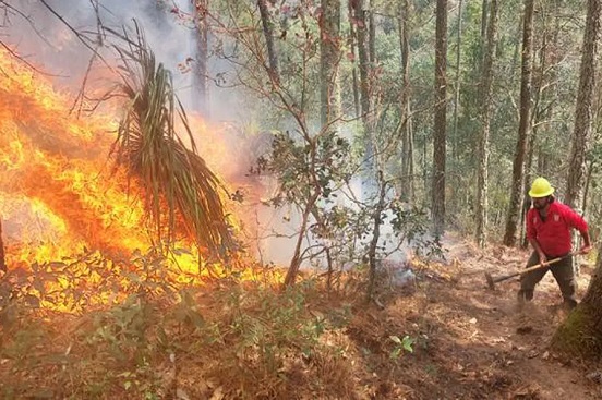 Un fuerte incendio se presenta en el parque nacional Los Mármoles, ubicado en Zimapán, Hidalgo, desde el pasado viernes 14 de abril.