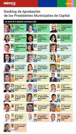 - Número 28 José María Frausto Siller de Saltillo, Coahuila, con 40.4% de aprobación