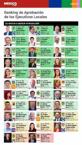 Ya que se encuentra dentro del top 10 de ejecutivos locales, incluso supera a Claudia Sheinbaum la cual se ubica en el sitio número 24 con 54.3% de aprobación.