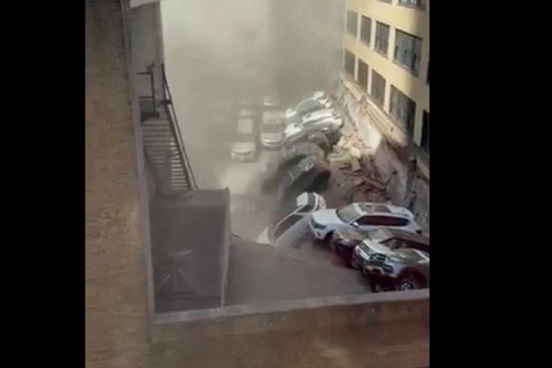 Imágenes difundidas en redes sociales permiten ver los automóviles apilados y uno de los pisos del estacionamiento totalmente colapsado.