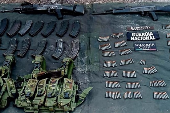 En el lugar se aseguraron tres armas largas tipo AK-47 con 18 cargadores y 382 cartuchos útiles, una granada de fragmentación y cuatro explosivos de fabricación casera.