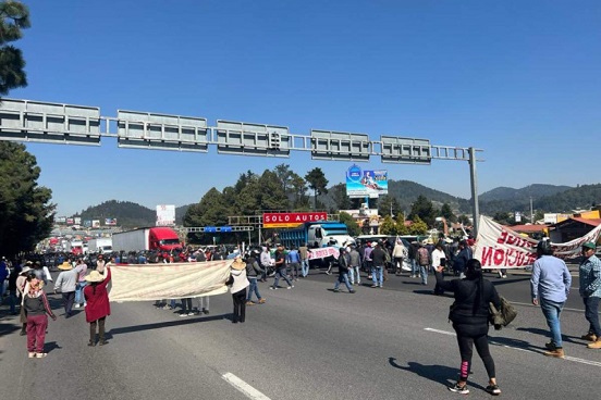 Un bloqueo en la autopista México – Toluca se registra la mañana de este jueves, por parte de habitantes del poblado de Acazulco que se oponen a las obras del Tren Interurbano.