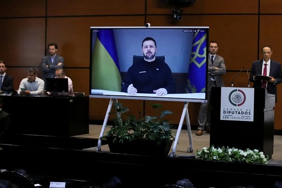 Ante la invitación de diputados del Grupo de Amistad México-Ucrania en la Cámara de Diputados para que el presidente de Ucrania, Volodímir Zelenski, diera un mensaje a los legisladores, Morena inmediatamente se deslindó de esto y aseveró que este foro no representa la postura del Congreso mexicano.