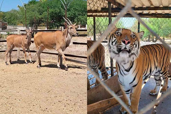 En el sitio se aseguraron dos antílopes, una llama, 10 tigres, tres de ellos cachorros, seis jaguares, cinco leones, dos ciervos rojos; dos águilas Harris, un ave emú, tres aves caracara, un cuervo, dos pelícanos, tres zopilotes, nueve pericos dorsirrojo, un cacomixtle, cuatro loros kramer, dos pericos multicolor y dos mapaches.