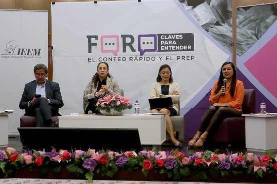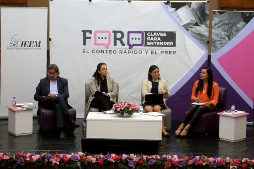 En el evento, participaron María Teresa Ortiz Mancera, Integrante del Comité Técnico Asesor del Conteo Rápido (COTACORA) del INE; Sandra Jessica Ley Gutiérrez quien forma parte del Comité Técnico Asesor del PREP (COTAPREP) del IEEM y Francisco Abundis Luna, Director Asociado de Parametría S.A de C.V.