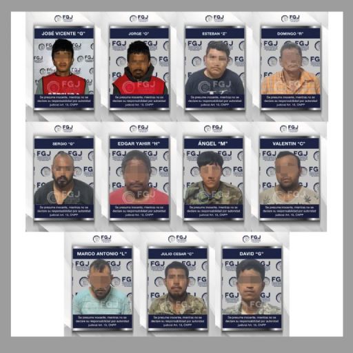 En dichas acciones se realizaron las detenciones de Esteban “Z”, Sergio “G”, Julio César “C”, Ángel “M”, Marco Antonio “L”, Edgar Yahir “H”, Valentín “C”, David “G”, Domingo “R”, y un menor de edad, de quien por Ley se reservan sus generales.