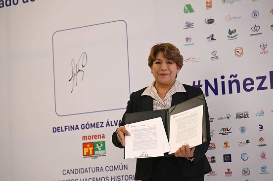 Al firmar el Pacto, la maestra Delfina Gómez se compromete a trabajar para disminuir el porcentaje de infantes que viven en pobreza, a reducir la desnutrición y a que todos los niños menores de un año reciban las vacunas que les correspondan. La maestra Delfina Gómez también se comprometió a incrementar sustancialmente el porcentaje de niñas y niños con un desarrollo infantil adecuado y a que los menores de seis años participen en programas de habilidades, así como a avanzar en la erradicación de todas las formas de maltrato infantil.