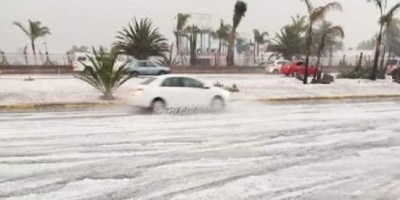Granizada tiñe de blanco la México-Pachuca y colapsa techo de primaria