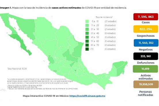 Por tanto, en tres años y poco más de dos meses, -ya que el primer contagio se detectó el 27 de febrero de 2020 – el acumulado de contagios sumó 7 millones 595 mil 863 y el número total de personas que perdió la vida por esta enfermedad aumentó a 333 mil 961.