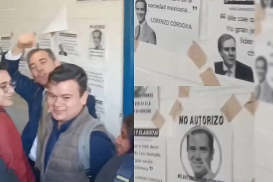 Durante la protesta, un grupo de alumnos también mostró su apoyo al exconsejero electoral al decir: “¡Que viva Lorenzo!”, mientras que un docente también se dedicó a arrancar los carteles que se colocaron en rechazo al exfuncionario.