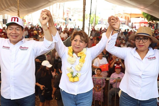 Más tarde, la maestra Delfina Gómez visitó el municipio de Donato Guerra y estuvo acompañada y respaldada por Mario Delgado, presidente del Comité Ejecutivo Nacional de MORENA; Martha Guerrero, presidenta del Comité Ejecutivo Estatal de MORENA; José “Pepe” Couttolenc, secretario general del PVEM en el Estado de México; Óscar González Yáñez, dirigente estatal del Partido del Trabajo; y Nancy Nápoles, presidenta del Consejo Estatal de MORENA.