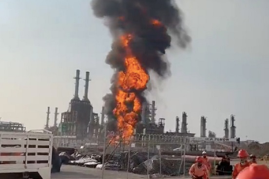 A través de redes sociales usuarios compartieron videos de la gran columna de fuego y humo en la refinería ingeniero Antonio Dovalía Jaime, la cual es perceptible desde varios kilómetros lejos de la zona.