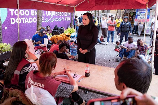 La Alcaldesa de Cuauhtémoc, Sandra Cuevas visitó la Plaza Giordano Bruno para constatar el cúmulo de migrantes que llegan a este sitio y se dirigió al módulo del Gobierno de la Ciudad para preguntar acerca de la ayuda que darían a los migrantes.