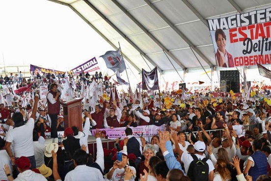Ante más de 40 mil integrantes del magisterio mexiquense, la candidata a gobernadora por MORENA, PT y PVEM, la maestra Delfina Gómez reiteró que asume “como propias cada una de sus luchas. Por eso el Gobierno del Estado de México dejará de ser un obstáculo para convertirse en uno de ustedes”.