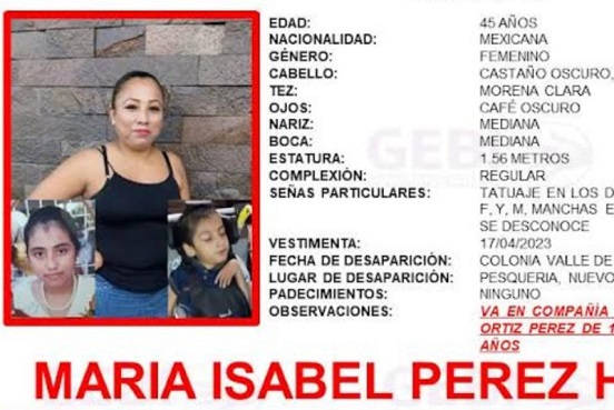 En medio de la crisis de desapariciones que enfrenta el estado de Nuevo León, ahora las autoridades emitieron una alerta de búsqueda de una mujer, de 46 años, que desapareció junto a sus hijos de 14 y 15 años.