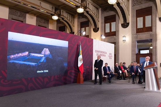 En esa zona arqueológica además hay “importantes tareas de investigación y conservación de las que pronto daremos cuenta, el 70 por ciento de trabajos de investigación y conservación que probablemente se puedan extender dado que el presidente ha planteado la posibilidad que arqueólogos puedan seguir trabajando en esta y otras zonas arqueológicas, y 70 por ciento de avance ponderado de tareas de investigación y 50 en de conservación y restauración de elementos y decoraciones arquitectónicas; además que en la rehabilitación del museo se tiene 15 por ciento de avance”.