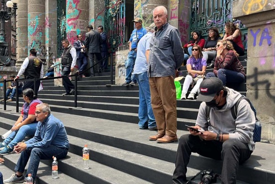 Los manifestantes permanecen de manera pacífica en las escalinatas del Congreso de la CDMX en espera de que sea recibida una comisión.