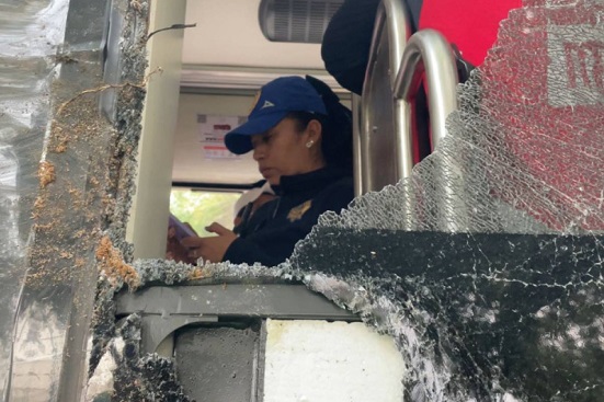 Los daños al autobús con número económico 3339 fueron en la parte del toldo frontal y en las ventanas laterales del lado derecho.