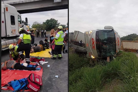 Un muerto y al menos 10 lesionados dejó el choque de dos tráileres y un autobús de la línea OCC en el tramo de la autopista La Tinaja-Cosoleacaque, a la altura del kilómetro 190 +900 con dirección al sur.