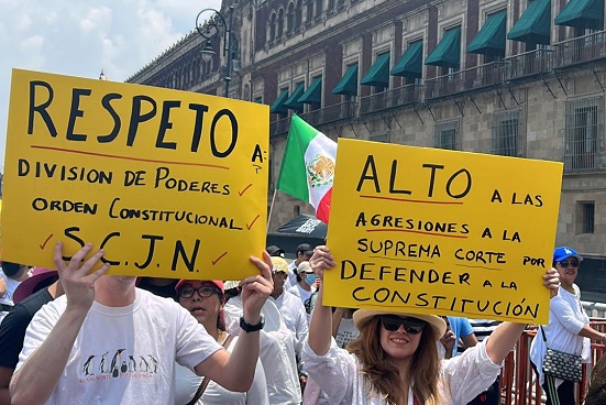 Entre las consignas de la movilización a favor de la SCJN se escucha “Presidente, la Corte no se vende”.