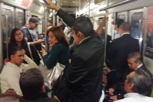 Era viernes. Me subí en la estación Deportivo 18 de Marzo. Venía de una cita cerca de la Basílica. El recorrido iba a ser largo hasta el otro lado de la ciudad. El vagón venía muy lleno porque la estación anterior es la terminal Indios Verdes y ahí se acumula mucha gente, sin embargo, logré colocarme parado en mi sitio favorito, es decir, las puertas del lado contrario a la salida, a la derecha.