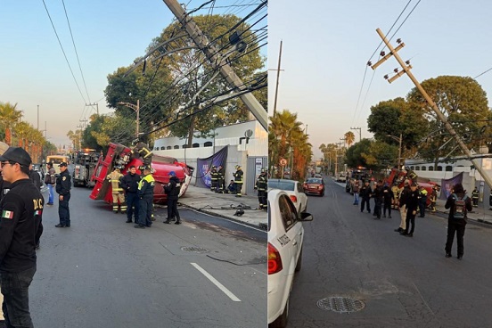 Una pipa perteneciente al Heroico Cuerpo de Bomberos de la Ciudad de México se habría volcado esta mañana en la alcaldía Tláhuac, esto tras haberse estampado contra un poste de luz.