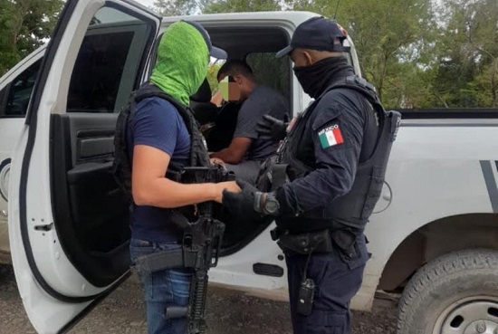 Al revisar, encontraron dentro la cabina, a un hombre estaba plagiado, además cuatro armas largas, una de ellas con lanza granadas y equipo táctico.
