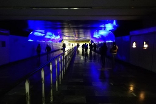 De pronto, al cruzar la bóveda celeste, bajé la velocidad de mis pasos, mientras la gente seguía con su acostumbrado acelere de un lado y otro de los pasillos. me atrajo una pareja con una niña adolescente. el acento me pareció conocido, parecía veracruzana, aunque ahora ya no sabemos, a lo mejor eran centroamericanos migrantes. El trío de personajes con acento costeño de quienes nunca supe ni les pregunté de dónde son, admiraban tranquilamente cada área del excelente espacio. Supuse que venían desde el inicio del túnel, en la línea 3.