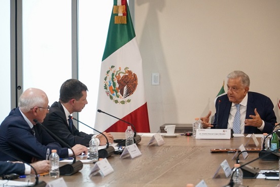 El presidente Andrés Manuel López Obrador se reunió con el secretario de Transporte del gobierno de Estados Unidos, Pete Buttigieg, en las instalaciones del Aeropuerto Internacional Felipe Ángeles.